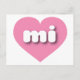 This postcard features a cool pink heart containing the bold, white, rounded lower case letters mi, a playful abbreviation for Michigan, the Great Lakes state. The reverse side of the postcard is blank, awaiting your customised text or handwritten sentiments.