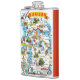 The flask itself is fine. It’s a cheap flask, obviously bought in bulk, however am prepared to overlook that. Given that it is a personalized item, I would have liked to have seen gift boxing instead of the generic packaging. Terrible printing, and/or quality. It’s a cheap, tacky vinyl. It is not cut straight and is also applied in a way that it is overhanging the bottom, causing the glue to catch on items and it will eventually roll and tear, damaging the wrap.