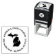 This custom self inking return address stamp features a silhouette of Michigan and a heart you can move to indicate your city.