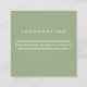 An information enclosure card that is done in sage and white typography with just enough information to win the day. This item is part of a wedding collection that includes your choice of invitation, an RSVP card, Save the Date, and more. Place your information on this card, add it to your cart, and have a wonderful wedding.