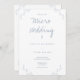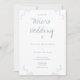 A wedding invitation for a micro wedding. This invitation is done in blue on white and features outlined leaf details. Simply add your information, add this invite to your cart, and enjoy your small and intimate wedding.