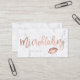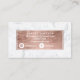 An elegant modern, stylish microblading artist business card with elegant script lettering style typography with lips in faux rose gold foil on a trendy and elegant white marble background.