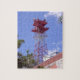 Microwave wireless telecommunications tower for microwave relay service stands above the telephone company central office downtown.