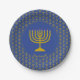 Mid Blue Hanukkah Customisable MENORAH Paper Plate