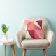 Mid Century Modern abstract composition of triangles in shell pink, coral and deep plum, outlined in sand beige - digital design throw pillow