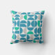 A playful, aquatic-toned mid century modern pattern of semicircles and squares.