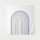 A mid-century inspired design of abstract arches in a calming blue and beige colour palette.