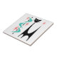 My Atomic Black Cat design with Aqua Boomerangs and pink Starbursts on a white ceramic tile. All images copyright ©Donna Mibus. My Atomic Cat image is registered with the US Copyright Office. No part of him can be used or copied without permission.