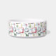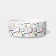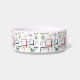 This fabulous mid century modern pet bowl features abstract squares, starbursts, and a boomerang in the colours of red, green, blue, yellow, and black, and your pet's name in a red casual font. Add a fun element to your pet's feeding time!