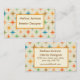 This is custom personalised business card featuring elegant mid century modern colourful atomic starburst pattern in different vibrant colours like blue, mint green, orange and coral