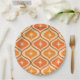 This is elegant mid century modern atomic starburst pattern placed in orange and amber ogee ovals on beige background. It's great looking paper plate for anyone who love retro geometric designs