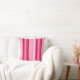 Classic, Mid-Century Modern awning stripes in Soft, blended colours, with a centre trellis pattern accent stripe throw pillow, in medium and pale pink with deep fuchsia pink and burgundy wine accents