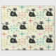 Mid Century Black Atomic Cat with Starbursts Wrapping Paper