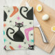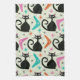 Mid Century Black Atomic Cats with Boomerangs Tea Towel