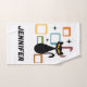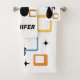 Colourful abstract Mid Century style illustration with black cat, black stars and colourful cubes decoration on white background. You can add your name/monogram to personalise the item.