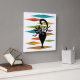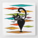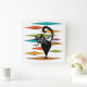 Colourful abstract Mid Century style illustration with black cat and colourful rhombuses decoration on white background
