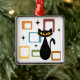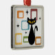 Colourful abstract Mid Century style illustration with black cat, black stars and colourful cubes decoration on white background. You can add your name/monogram to personalise the item.