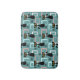 Colourful abstract Mid Century style pattern with black cat, black stars and colourful (blue, white, pink) cubes decoration on turquoise background for every cat lover, cat mum and cat dad.
