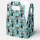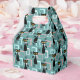 Colourful abstract Mid Century style pattern with black cat, black stars and colourful (blue, white, pink) cubes decoration on turquoise background for every cat lover, cat mum and cat dad.
