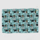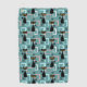 Colourful abstract Mid Century style pattern with black cat, black stars and colourful (blue, white, pink) cubes decoration on turquoise background for every cat lover, cat mum and cat dad.