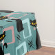 Colourful abstract Mid Century style pattern with black cat, black stars and colourful (blue, white, pink) cubes decoration on turquoise background for every cat lover, cat mum and cat dad.
