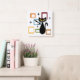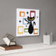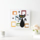 Colourful abstract Mid Century style illustration with black cat, black stars and colourful cubes decoration on white background. You can add your name/monogram to personalise the item.