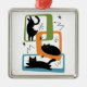 Colourful abstract Mid Century style illustration with black cats, black stars and colourful cubes decoration on white background