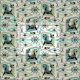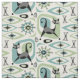 My original vector illustration of mid century style abstract cats, cubes, starbursts, boomerangs, lozenges, and more, in turquoise, green, grey, and black on off white/tan.