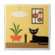 Mid Century Cat with Mod Pods on Yellow Ceramic Tile