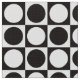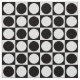 Modern abstract chequerboard design of circles and squares in classic black and white