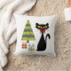 Colorful abstract Mid Century style illustration with black cat, Christmas tree and Christmas gifts decoration