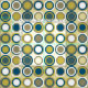 This funky retro style mid-century fabric features circles of tan, white, two shades of blue, and yellow. This is sure to be an eye catcher in your sewing or quilting project!