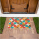 This is elegant mid century modern abstract half circles pattern in orange, red, teal and brown.It's great doormat for anyone who love retro geometric designs