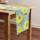 Mid-Century modern dandelion clocks table runner in pale yellow. Perfect for any mid-century modern home.