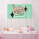 Fifties Party Banner features mid-century modern sign style typography of "Fifties Party''. This design includes elements of mint green, orange, black and white, polka dot background, retro shapes, stars and designs inspired by the 50's. Includes a template for personal customisation.