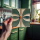 This exquisite mid-century modern ceramic tile is a loving homage to the time-honoured Arts and Crafts movement. Expertly crafted in our Barcelona workshop, it features abstract symmetrical shapes and imitates the captivating allure of mid-century modern faux relief tiles. The symmetrical designs echo a harmonious balance, the ideal expression of abstract aesthetics of mid-century modernism.