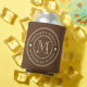 Mid-Century Forest Brown Wedding Monogram Heart Can Cooler