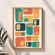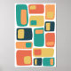 Mid Century Funky Geometric Shapes Orange, Teal Poster