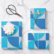 Mid century Geometric Blue Shapes Pattern Wrapping Paper Sheet