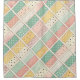 A seamless geometric pattern shower curtain featuring a playful blend of polka dots, stripes, and plaid grids arranged in diamond formations. Rendered in a warm retro palette of mustard yellow, terracotta, mint green, blush, and cream, this design evokes mid-century charm with a modern twist. The mix of hand-drawn lines and dotted textures gives it a cosy, artisanal look.