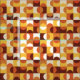 This is elegant mid century modern half circles in yellow, white, brown and burnt orange.