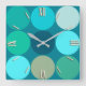 Mid-Century Giant Dots, Turquoise, Aqua & Beige Square Wall Clock