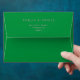 This beautiful envelope created with a geometric shape pattern in shades of forest green and pink, perfect for a modern mid-century or vintage-inspired wedding. Perfect for your wedding invitations or other correspondence, this envelope is sure to make a statement.