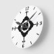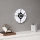 Round Wall Clock wall art decor and decorative home furnishing decor accessory printed with Four Part Mid Century Mediterranean Pointer Sections Black And White Time Piece Modern Contemporary Indie Abstract Art on a changeable customisable background colour of your choice original artwork design illustration and select products collection by TheFabricSeal print on demand shop at Zazzle.com #ZazzleMade https://www.zazzle.com/store/thefabricseal TheFabricSeal©️Original.