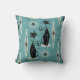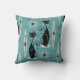 Mid Century Meow Retro Atomic Cats on Blue Cushion
