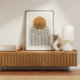 A minimal abstract art with a mid century geometric design in mustard and black on a off white background. A perfect accessory for a contemporary home.