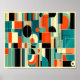 Great quality poster featuring unique, mid-century modern, abstract art of geometric patterns in turquoise, teal, orange, coral, black and off white. This design is also available on lightweight canvas and may be transferred to other Zazzle products.