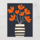 A lush tangerine floral crown in a navy striped vase commands attention against a calm sky blue backdrop.