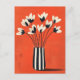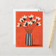 Bright orange petals and navy stripes give a fresh retro flair on soft cream, reminiscent of vintage kitchen design.