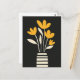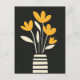 Mustard-coloured petals bloom from a solid black-striped vase, coolly offset by an aqua background.